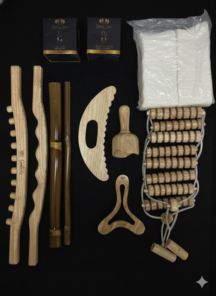 Este kit esta diseñado para trabajar desinflamaron y moldeo corporal con mayor precisión. Incluye 7 herramientas premium, dos geles (criogeníco y térmico) para potenciar cada sesion, y un paquete de gasas corporales ideal para protocolos profesionales. Cada pieza fabricada es de alta resistencia, pulida a mano con un acabado suave que permite maniobras fluidas, control absoluto y resultados visibles desde la primera sesion. Perfecto para cabinas que buscan elevar sus tratamientos con herramientas versátiles, duraderas y de nivel profesional
